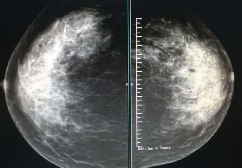 5類:高度懷疑惡性,臨床應(yīng)采取適當(dāng)措施(幾乎肯定的惡性)。這一類病變有高度的惡性可能性。檢出惡性率的可能性大于等于95%。形態(tài)不規(guī)則星芒狀邊緣的高密度腫塊、段樣和線樣分布的細(xì)小線樣和分支狀鈣化、不規(guī)則星芒狀邊緣腫塊伴多形性鈣化均應(yīng)歸在這一類中。