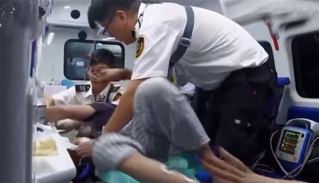 在救護(hù)車上面醫(yī)護(hù)人員搶救過程