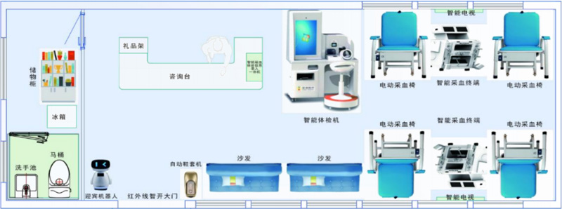 顯浩智能獻(xiàn)血屋可提供主體結(jié)構(gòu)、專業(yè)智能醫(yī)療設(shè)備、配套軟裝等全套解決方案,覆蓋設(shè)計、生產(chǎn)、安裝全流程作業(yè),外觀設(shè)計新穎大氣,內(nèi)部寬敞明亮,布局規(guī)范合理,環(huán)境舒適溫馨,并可根據(jù)具體個性化需求進(jìn)行調(diào)整。智能采血設(shè)備配備信息錄入體檢一體機(jī)、智能采血終端等,極大解放人力,同時方便護(hù)士操作、保證采血質(zhì)量。